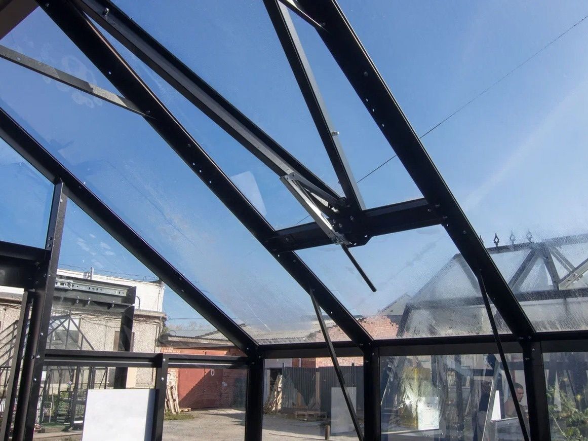 Стеклянное покрытие обеспечивает максимально естественное освещение растений и способствует равномерному распределению света внутри теплицы. Это положительно влияет на фотосинтез и развитие культур.